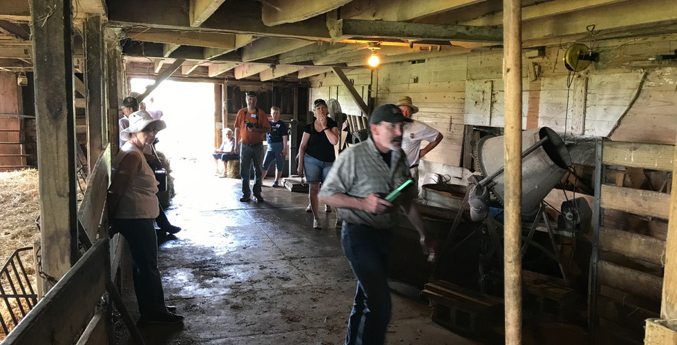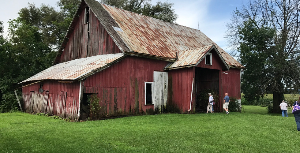The Indiana Barn Foundation hosted its first bus barn tour of five Hancock and Madison County Barns on July 21, 2017. An enthusiastic group of 45 participants enjoyed traveling the backroads of these Indiana counties to explore several rural treasures. Onboard were three noted "barn detectives" who provide insight into the history and construction techniques of the unique barns. Between stops, county historians Brigett Cook Jones and Steve Jackson provided historical insight into the counties' past.